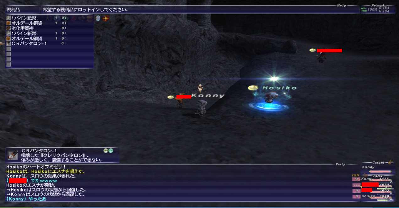 展示会で1個余ったから飲み代と交換とか 危うくひっかかりそうでした(´_`。) とあるKさんが白脚ほしいほしいうるさいので 今回も4人でデュナミス-タブナジアです。 今回の構成はモシ白赤。 初めて止まっている砂時計使った! 砂時計でびゅー 問題なくサポ開放のためのNMを回ります。 とりあえず赤がでたら驚く図。 結局異界送りに('∇') 蜂を掃除したら念願の魚エリア。 白脚はまだかーまだかーと魚を殴ってると回線切断に。 あわあわして戻ったけど予想通り特に問題なさそうに進んでた;w; もう魚終わりかーと思ったら奥に2匹潜んでたのでそれを釣り 最後の1匹でついに・・・ バ系大好きっ子にはたまらない一品!ずっとほしかった! 付き合ってくれたみんなには感謝感謝です(´Д⊂ コンクエまたいで完成したらバ系の記事をきっと書くはずw そのままちょこちょこ死んだりもあったけど順調に進みます。 そして前回見つかってしまったボスへ。 やってしまうと結構いけるものなのですが、やっぱり緊張するw 3匹広場に固まってて余裕でした(・×・) そんなこんなで! 4人でクリアできました!やったー!めでたい! 私は前にクリアしてました(/ω\) 延長1個とらずに全部で66匹倒してドロップは バイン17枚 トゥクク14枚 オルデ27枚 AF2 青胴 暗胴 モ頭 劣化 白脚 忍脚 赤脚 召脚 黒脚 踊脚 踊脚 ハイドラゲートル 今回のボスはClubだったからか苦労せず倒せました。 Spadeも弱いみたいですね。 単体魅了のDiamond、無詠唱デスのHeart様は大変かも? そんな感じです。またね! PR この記事にコメントする
