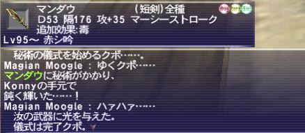 ビースト類に200回マーシー打ち込むだけ! 最初はアビラテのウサギでリゲインリジェネアートマつけてやってたのですが NMからんだり予想以上にだるいし死ぬので、アビブンカのマーリドですることに マーシー楽しいなぁと打つだけなので結構なペースで消費。 打つだけとはいえ時間結構かかったけどね!D値+1うまああ 記念すべき2回目のノック! ヴぁーみん200マーシーでとどめ。アビラテトンボをひたすらマーシー! 不意からめるとエヴィより強い!楽しい! 突弱点は面白いですな('∇') アートマは基本灰燼凶角山陰。倍撃で倒しちゃうのはご愛嬌。D+2うめえ 3回目のお題は植物300マーシーとどめ! アビセアめぐったけどなかなかいい場所見つからずボヤマンドラ。 丁度TPたまって即マーシーで死ぬくらいで結果的に楽だった! ボヤの箱うめぇ、300匹だりぃ、D+3うまぁ 4回目。バード300〆。 アビラテの鳥でちまちま。NMまじうざい。数が減らない。 マクロ押し間違えてダンス〆したりまじやばい 80マンダウ!D値1、攻撃5もあがった!実用れべる! 5。どらごん400まーしーめ らてぷくりんくうまい!とりよりらくちんぽん 85マンダウ!d3、攻撃5あがった!やtt-! 6回目。裏氷河の証落とすやつ5匹。 これがまたひどかった。3連休の最後の日かな? マーシー威力アップだ!と楽しみに5回目を終わらせて手伝い頼んだわけですよ 2時間もやればさすがに5匹終わるだろうと。 結果から言うと3匹しかできなくてですね、トリガーでなさすぎわろえない 翌日ソロで次に手伝ってもらうためにトリガー取りに行きました。 白黒吟が落とすんですけど、眠ボルトあれば黒とか雑魚だろと思って行ったわけです。 まぁハイドラさん眠ボルト入りませんよね。常識ですよね。 かくれるを有効活用して5分おきに詩人だけ倒してトリガーなんとか1つとってデジョン。 結局もう1日手伝ってもらって達成; 90マンダウ!D値がさらに3増えて、攻撃も5増加!マーシー威力25%アップ! 7回目。裏ザルカの短剣のやつ10匹。 これはlsリダのアナイアメイジャンと一緒にやらせてもらったのですが 忍シ狩赤白でさきに銃10匹倒して、その後短剣10匹予定だったわけです。 そうです、トリガーがなかなかでてくれないんです。とれはんくさってる;; なんだかんだで残り3分くらいで達成。よかった(´;ω;`) 95マンダウ!D値が4もあがって倍撃確立あっぷ!どのくらいかは知らないよ! サポ侍でロンフォのウサギに85,90,95マーシーうち比べ! 85裸 1375 1369 属性首腰 1416 1410 90裸 1756 1572 属性首腰 1771 1581 95裸 1805 属性首腰 1725 結果:検証作業とかは俺には不可能。もうダメージばらつくしわかめちゃん。 あとはサブ用に火キーラ+3と、今後何かありそうなのでアムレも+1に! マンダウ完成させた後はトレハン上げなくなった! 回避キーラもたなくなった!アタッカー気取りのくそしーふ! 苦労した補正含めて威力的には 不意マーシー >> マーシー≒ダンス な感じ! 不意だま絡めないとダンス以下ってよくいわれてたけれど 意外と素マーシーでもダンスとどっこいくらいは出てる気がする! PR この記事にコメントする