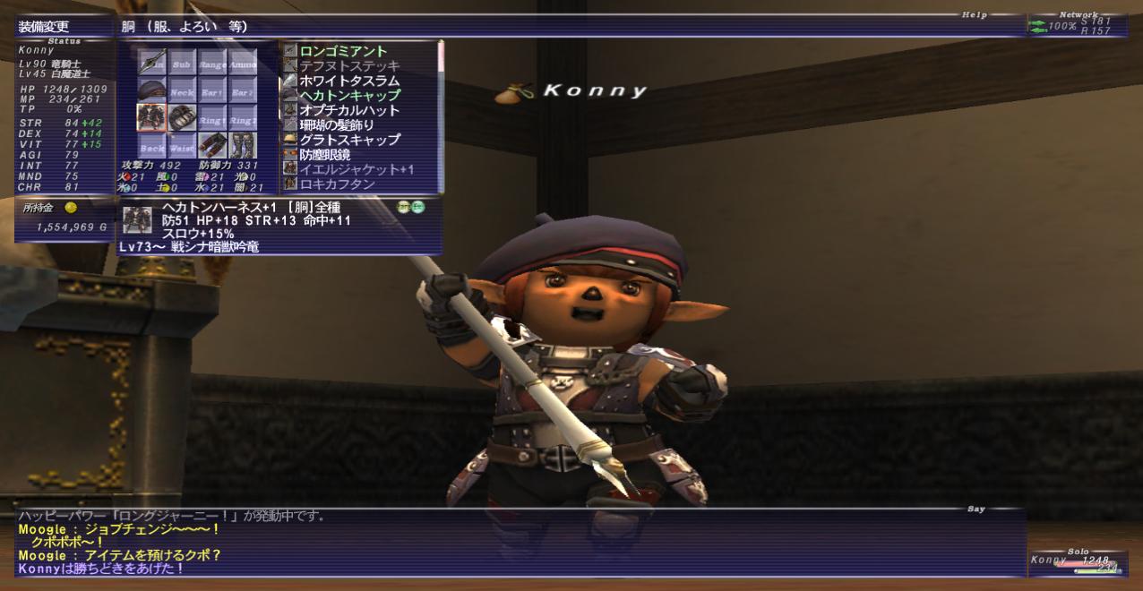 合成スキル+11は不可能なのでHQできる確立は1% ラスクが3種類あって効果弱中強とあるみたいで つまり単純に考えて効果強のココナッツラスク食べれば3%くらいあがるのでは! まぁ5%くらいになるなら12回座れば1個できるだろーと思ったわけです。 最初の2Dは黒虎のなめし革も自作してHQ作る気満々で合成を始めました。 そしてまぁ、もちろんできるわけもなく 翌日からは毎日素材買っては寝る前に合成する日々でした(つД`) そんで昨日はエンゼルスキンもオックスブラッドも競売の在庫がかなりあったので 実家に帰る前にHQ作ってやろうと意気込み珊瑚と黒虎を買おうとしたら そっちのほうが在庫少なかったっていう そんなこんなで貨幣とかにお金回したいところだけどひたすら散財 最初の頃は合成してるところを見つめながらHQの音を期待していたのですが もうできなさすぎてネット見ながらちまちま合成するように; 黒虎を競売であるだけ(Dの方だけ!)買って、20回以上スクワットしてたし 黒虎終わったら今日は諦めようと決めてまた余所見しつつ合成をして 最後の1回も合成しつつまたFF最小化してネット見ていたのですが 画面をふとみたら祟られた帯鎧の文字が! すっごいテンション上がった!合成サポートは御守気分。 次は頭(自分の分!)と、あわよくば脚(免罪どこですか!)のHQをヽ(`Д´)ノ ちなみにちなみに 98回のスクワットで11回割れて、86個NQ、1個HQでした。 もちろん98回目がHQ(;´ρ`) 所持金がやばい(´_`。) PR この記事にコメントする