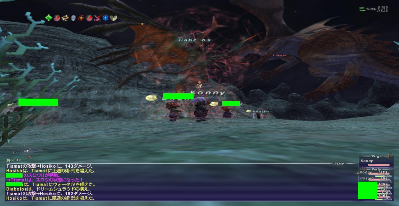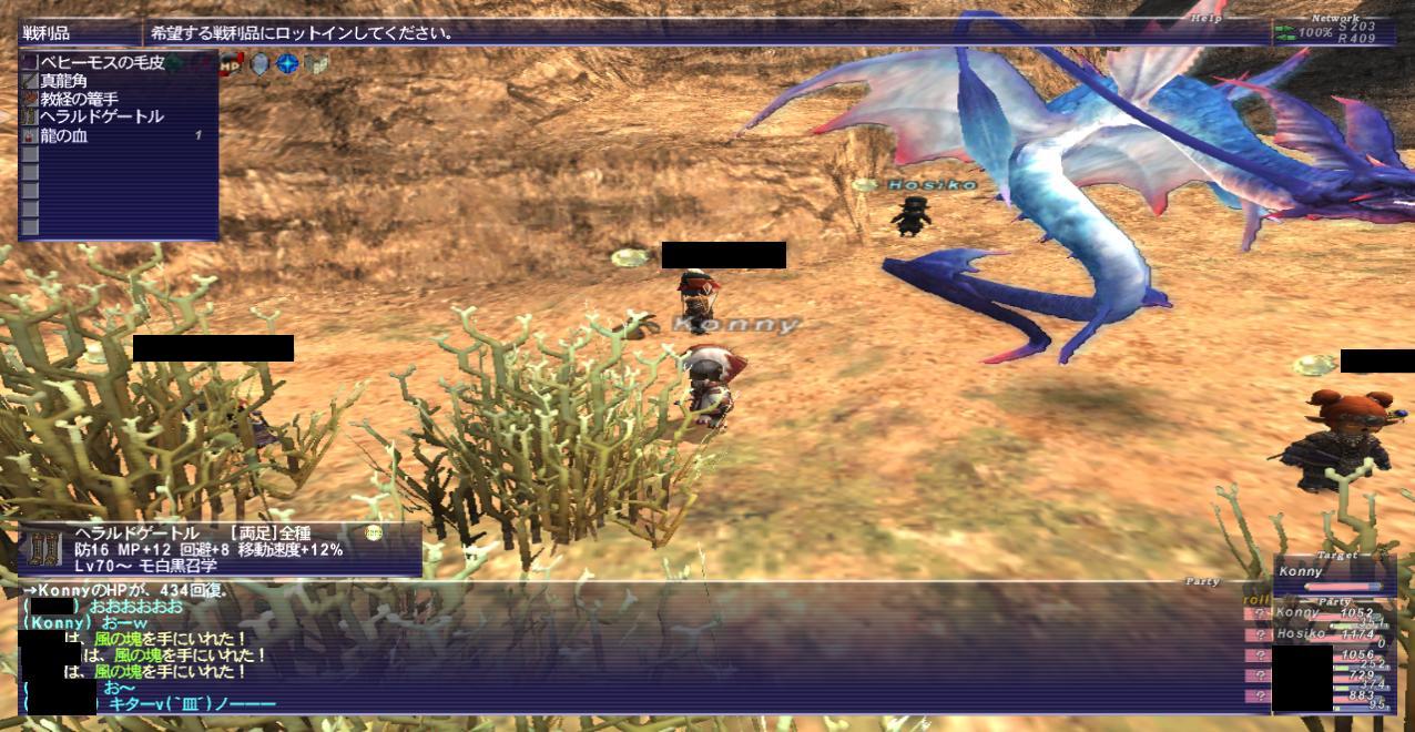 今回はティアマットさんをlsメンが発見したので突撃してきました。 最終的な構成は忍白赤赤召。赤のうち一人は途中から参加 一応最初シフでいってトレハンのっけてデジョンして白になってネクサス。 戻るまではスリプルでキープしておきました。 基本的に忍盾を死守する形でやっていました。 地上にいるときの通常攻撃はほぼ避けれてたみたい。 マイティされても当たらなければ意味がない('Д') 飛ばれると攻撃当たらないうえに攻撃が蝉貫通火ダメージに 死なせないようにケアルしつつ、精霊などいれてました。 時々天候でてると奥にみえるエレが絡んできますヽ(`Д´)ノ 夜はコースも稀にからんできます。合計でエレ3、コース1からみてぃ 全体を通して油断するとMPが厳しくなる感じでした。アビセア慣れ怖い あと地上にいるときはブレス直撃しないように真正面に立たないくらいかな? ファイガ3も最大400平均200ダメージくらいなのであまり怖くはない感じ。 そんなこんなで 1時間ちょっとの戦闘で勝利! ヘラルドゲートルもでた('∇') ロットは負けた('∇') そんな感じ。 記事書いてる途中で栄華揃ってしまった。 うっこ強すぎて楽しい!またね! PR この記事にコメントする