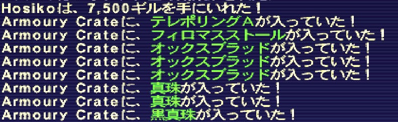ということで金策がてら前のVUで追加されたBCにLSで行ってきました。 ほとんど調べずにピクミンしてしまtt 怪鳥のねぐら 帝龍の飛泉で魔王印章50枚で交換するピアオーブを使っての無制限BCです。 15分制限で、当たり的な物は アンガージェム 投てき lv95~ 戦ナ 被物理ダメージ-2% rare アンガーリング 指 lv94~ alljob 魔命+4 hMP+2 rare ブリザジャ、ストライ、達ララ2とかでるっぽい。 ほとんどが体感で書かれてるので間違ってても怒らないでね! ほとんど調べてないので他にもっと効率のいいやり方とかもあると思うので そのへんはご愛嬌(/ω^\) 忍者ブログ [PR]